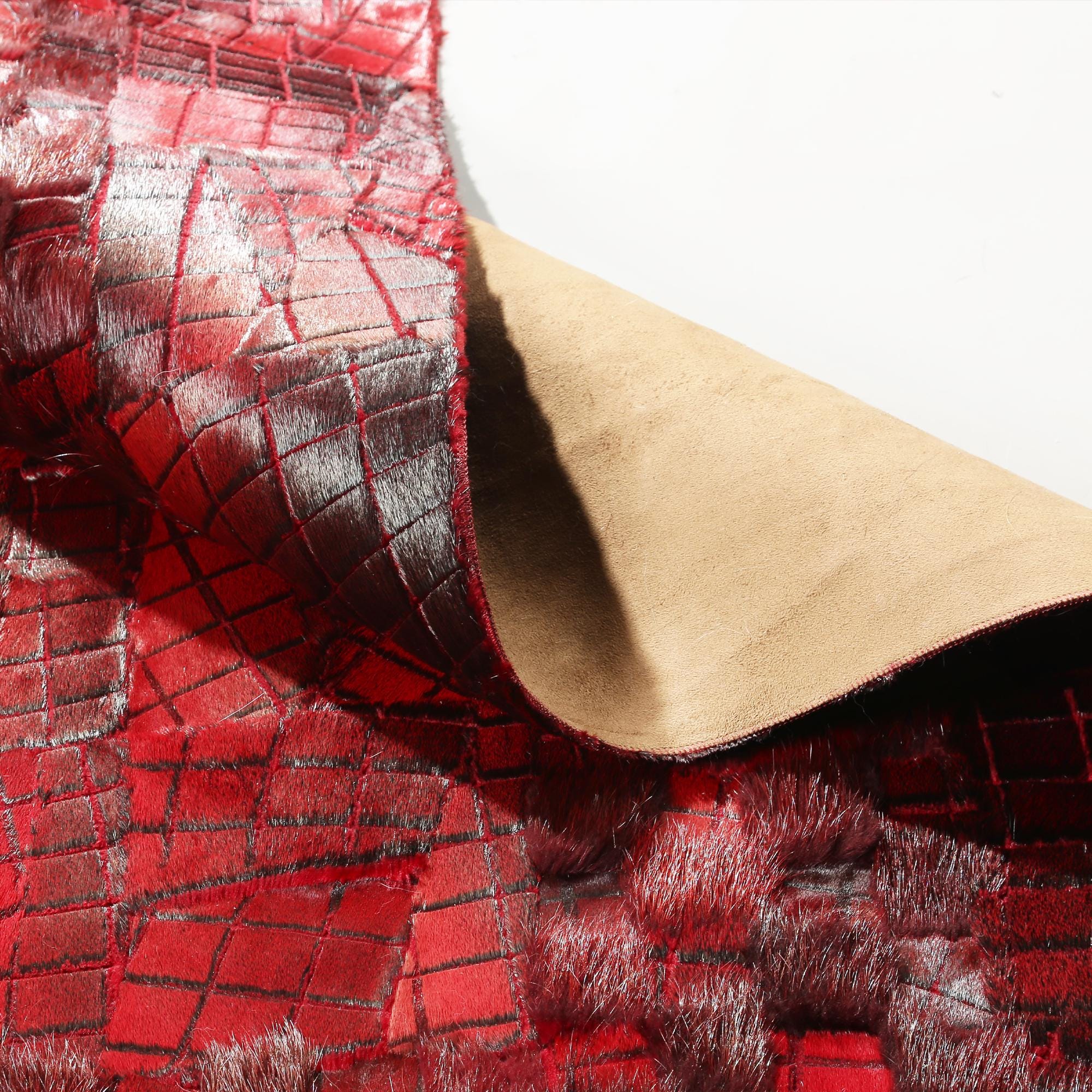 Kırmızı kare desenli bu gerçek deri halı, klasik görünümü modern detaylarla birleştirir. Dayanıklı yapısı sayesinde uzun ömürlü kullanım sunar.