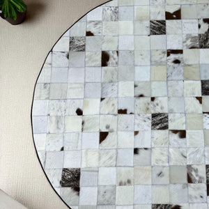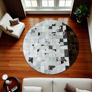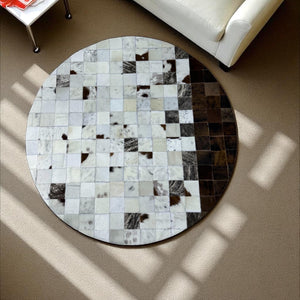Kahve Beyaz Yuvarlak Dana Derisi Halı