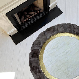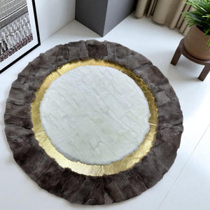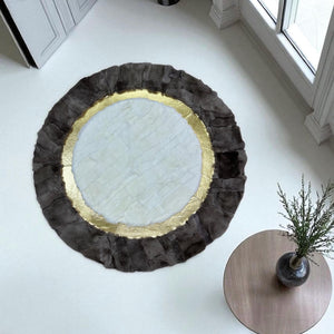 Krem Altın Kahverengi Yuvarlak Toskana Derisi Halı – El Yapımı Doğal Deri Halı