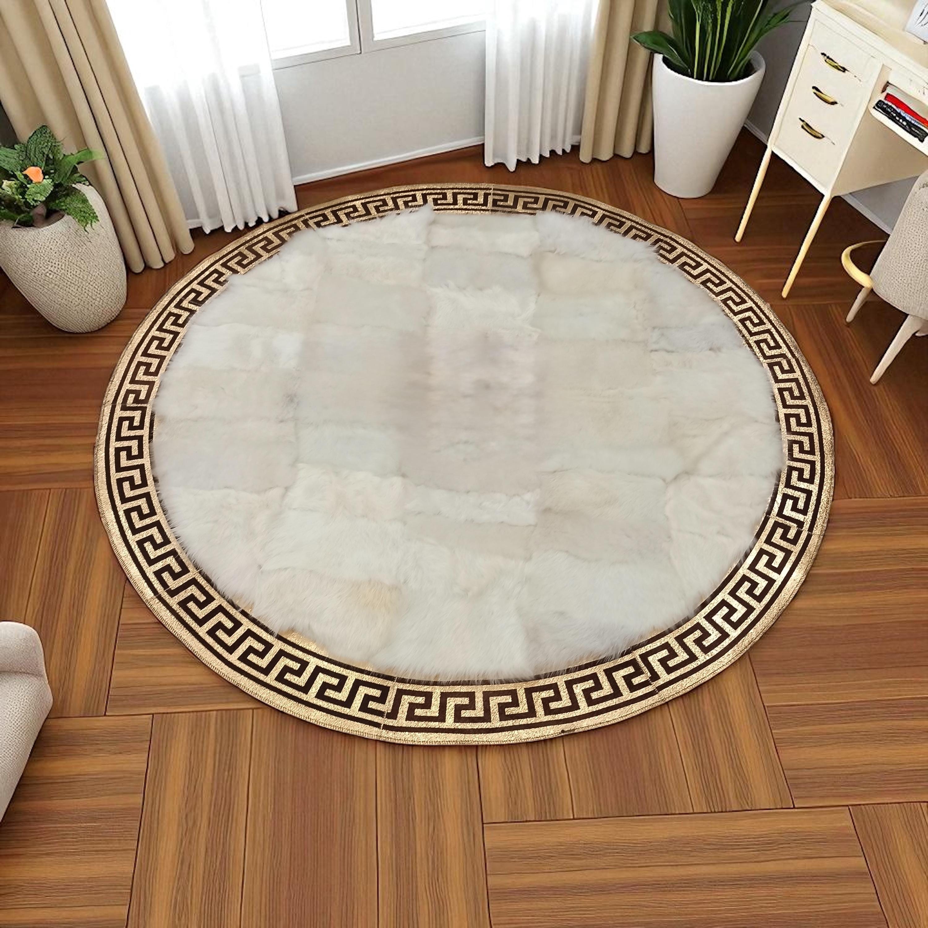 Krem Rengi Yuvarlak Toskana Derisi Halı – El Yapımı Doğal Deri Yuvarlak Halı