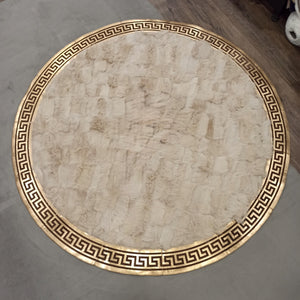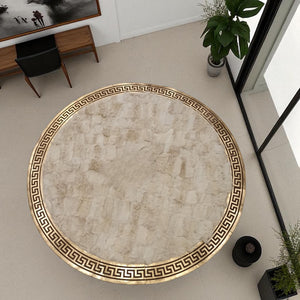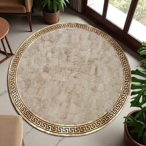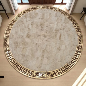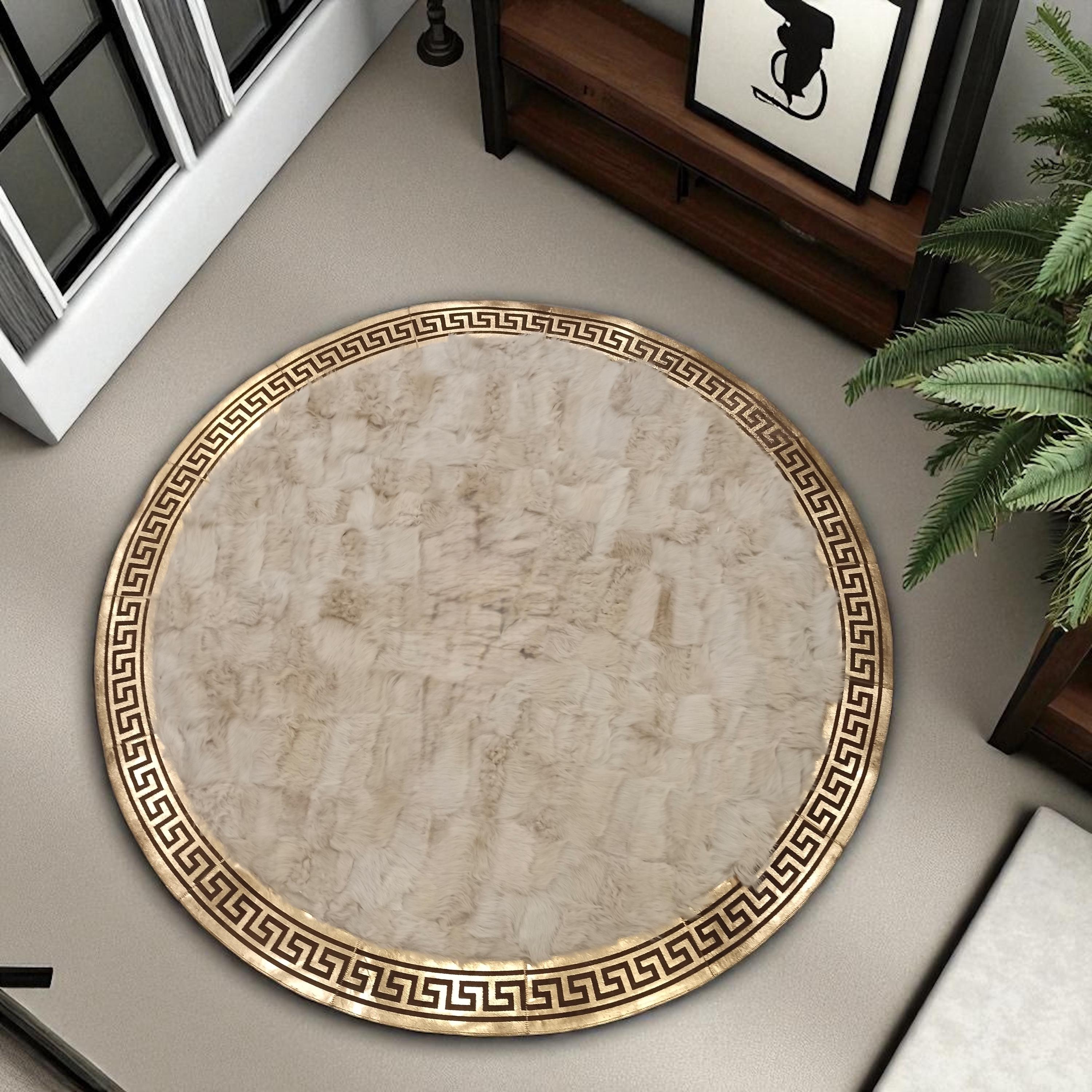 Altın Bordürlü Yuvarlak Beyaz Toskana Kürkü Halı - Şık ve Lüks Salon Halısı