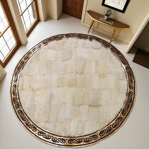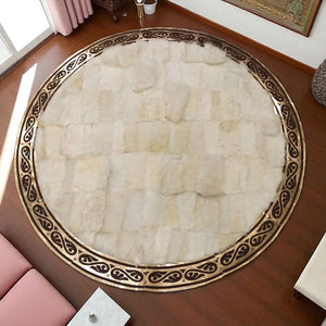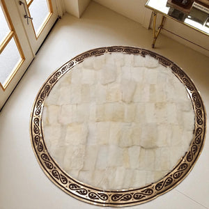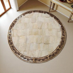 Yumuşak Beyaz Yuvarlak Toskana Deri Halı - Lüks Salon Halısı