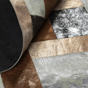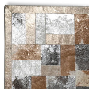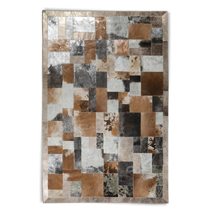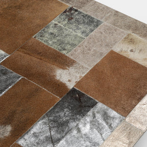 Gümüş Kahverengi Doğal Dana Derisi Patchwork Halı – El Yapımı Hakiki Deri Lüks Salon Halısı