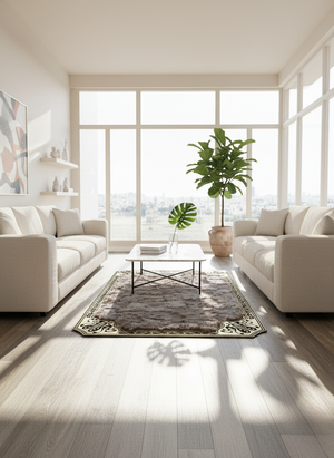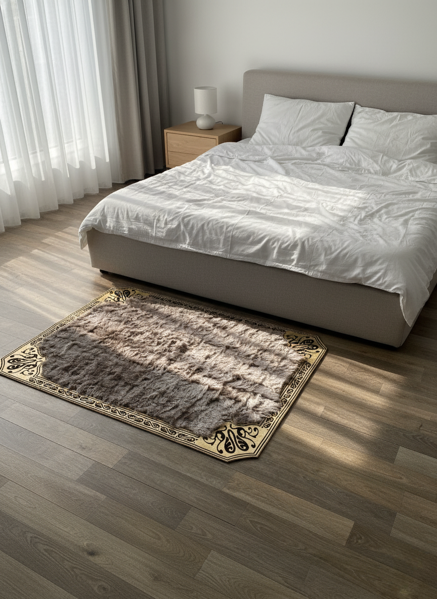 Açık Kahverengi Toskana Halı – Altın Çerçeve Detaylı, Yumuşak ve Doğal Kürk Doku, Kaymaz Taban – Özel Ölçü Seçenekleri