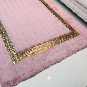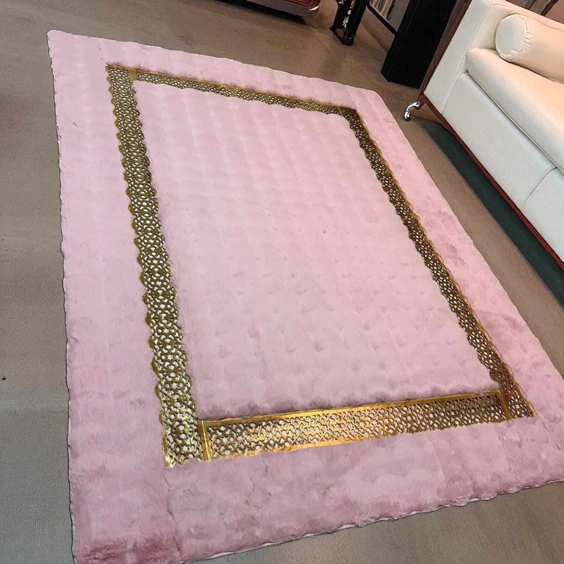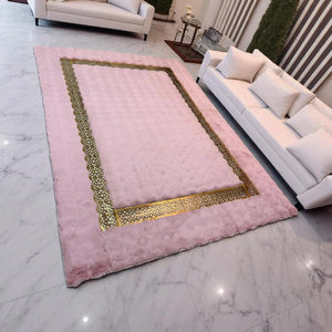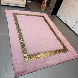 Pembe Peluş Halı - Altın Şeritli Yumuşak Halı