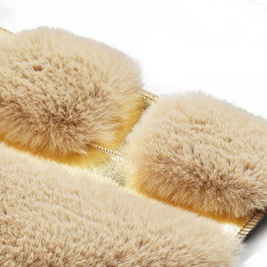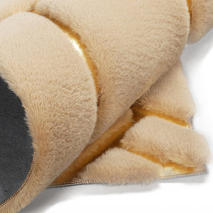 Krem ve Altın Renkli Modern Çizgili Desenli Yumuşak Peluş Lüks Salon Halısı