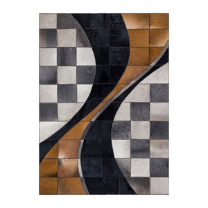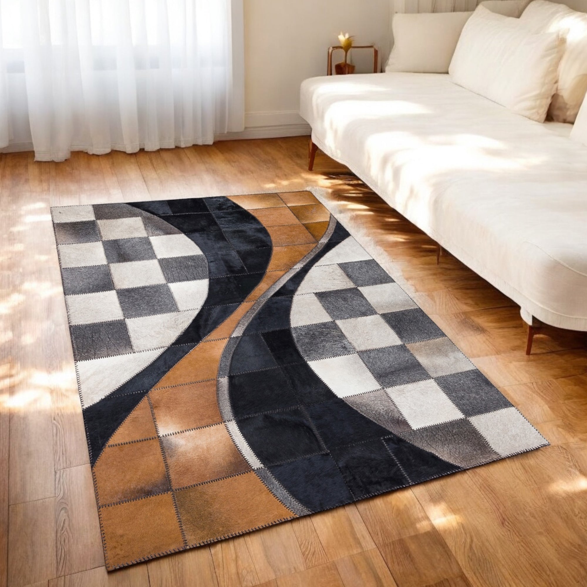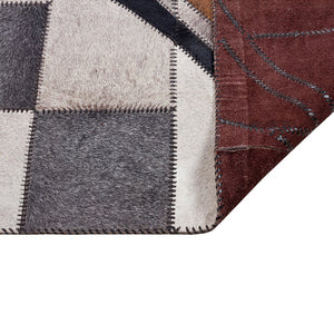 Üç Renkli Dana Derisi Patchwork Halı - El Yapımı Halı