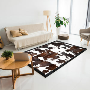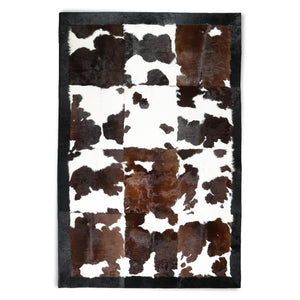 Siyah Kahve Beyaz Dana Derisi Halı – El Yapımı Hakiki Deri Patchwork Şık Salon Halısı