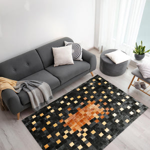 Siyah ve Altın Renkli Parlak Desenli Gerçek Dana Derisi Lüks Salon Halısı