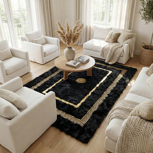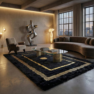 Siyah Altın Bordorlü Toskana Kürk Salon Halısı – Klasik ve Lüks Tasarım