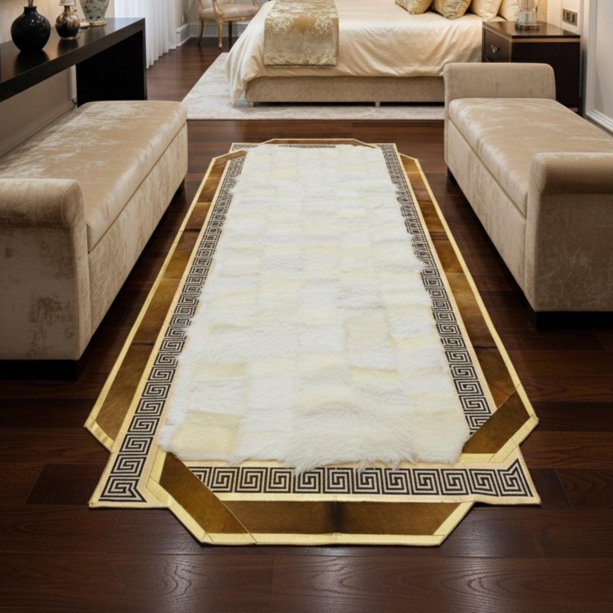 Altın Bordürlü Krem Toscana Kürk Koridor Halısı – Şık ve Prestijli Tasarım