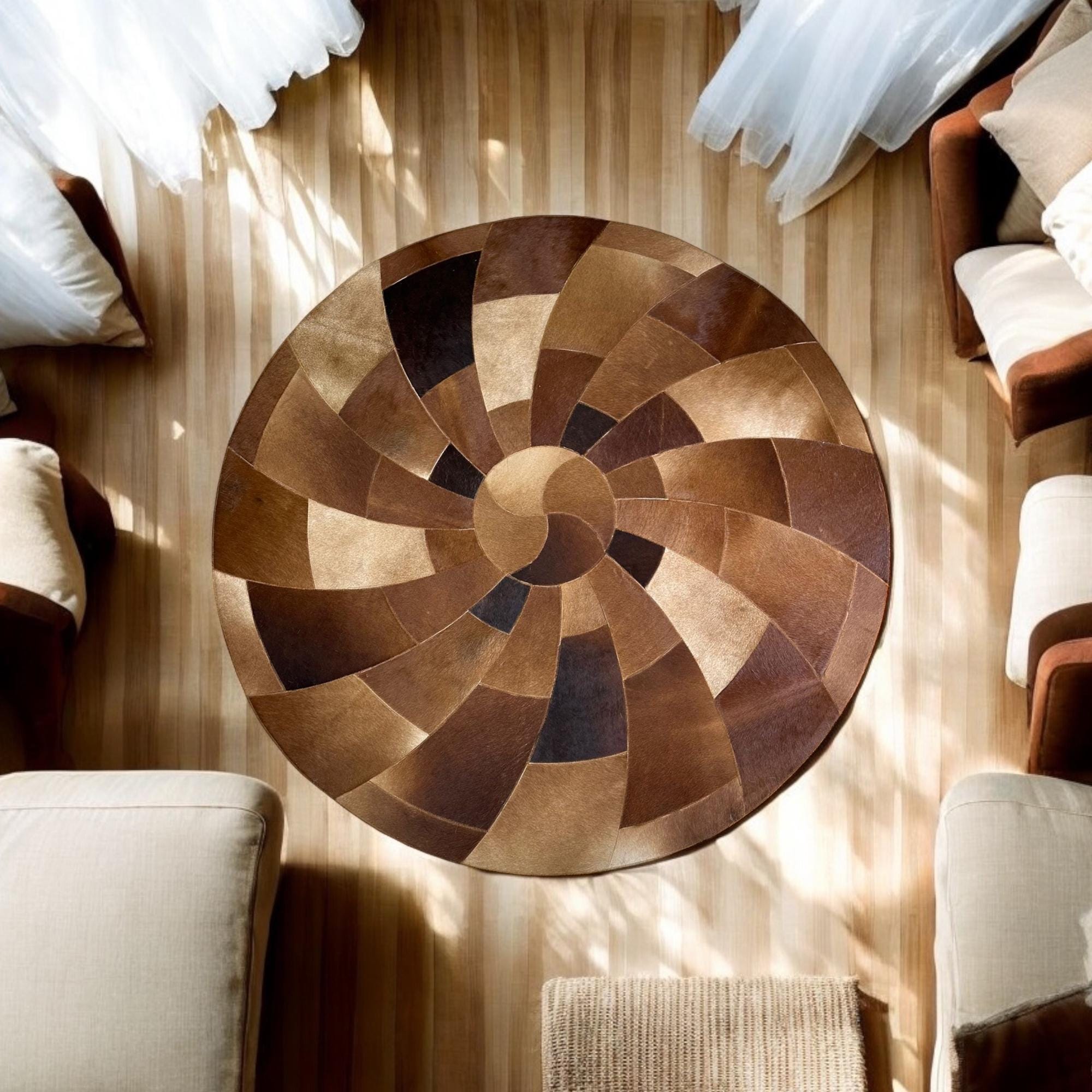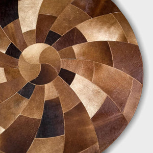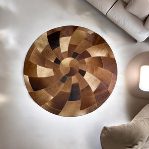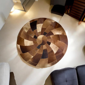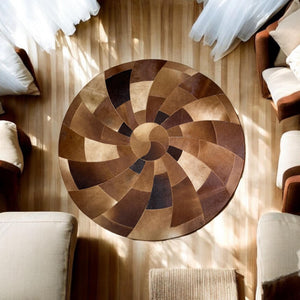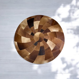 Spiral Desenli Kahverengi Yuvarlak Dana Derisi Halı