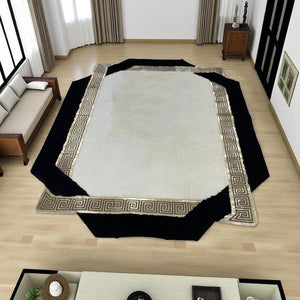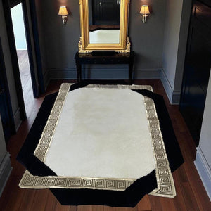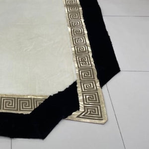 Siyah Şeritli Beyaz Peluş Halı - Yumuşak Salon Halısı