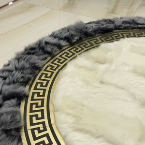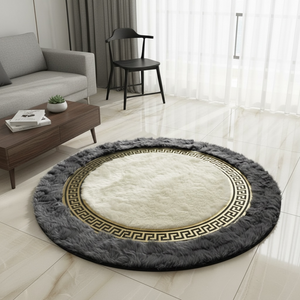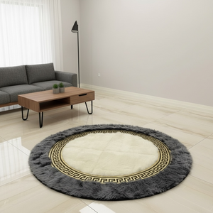 Krem Merkezli Koyu Gri Zeminli Altın Çerçeveli Yuvarlak Toskana Halı