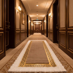 Beyaz zemin üzerinde açık kahverengi camel merkez detayıyla tasarlanan bu peluş halı, sade ve dengeli renk geçişleriyle mekâna ferah ve zarif bir görünüm kazandırır. Merkezde yer alan camel ton, halıya net bir odak noktası oluştururken beyaz zemin tasarımı aydınlık ve düzenli bir bütünlükle tamamlar.
