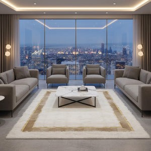 Doğal Toscana kürkünden üretilen bu beyaz salon halısı, sade rengi ve zarif çerçeve detayıyla klasik ve lüks yaşam alanları için tasarlanmıştır. Beyaz tonlarının ferah ve aydınlık etkisi mekâna genişlik hissi kazandırırken, Toscana kürkünün yumuşak ve ipeksi dokusu halıya konforlu ve sofistike bir karakter katar.