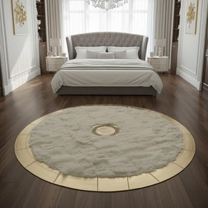 Beyaz Zeminli Merkez Altın Detaylı Altın Çerçeveli Yuvarlak Toskana Halı