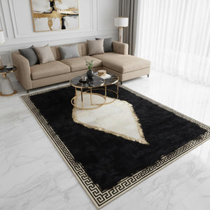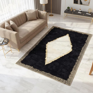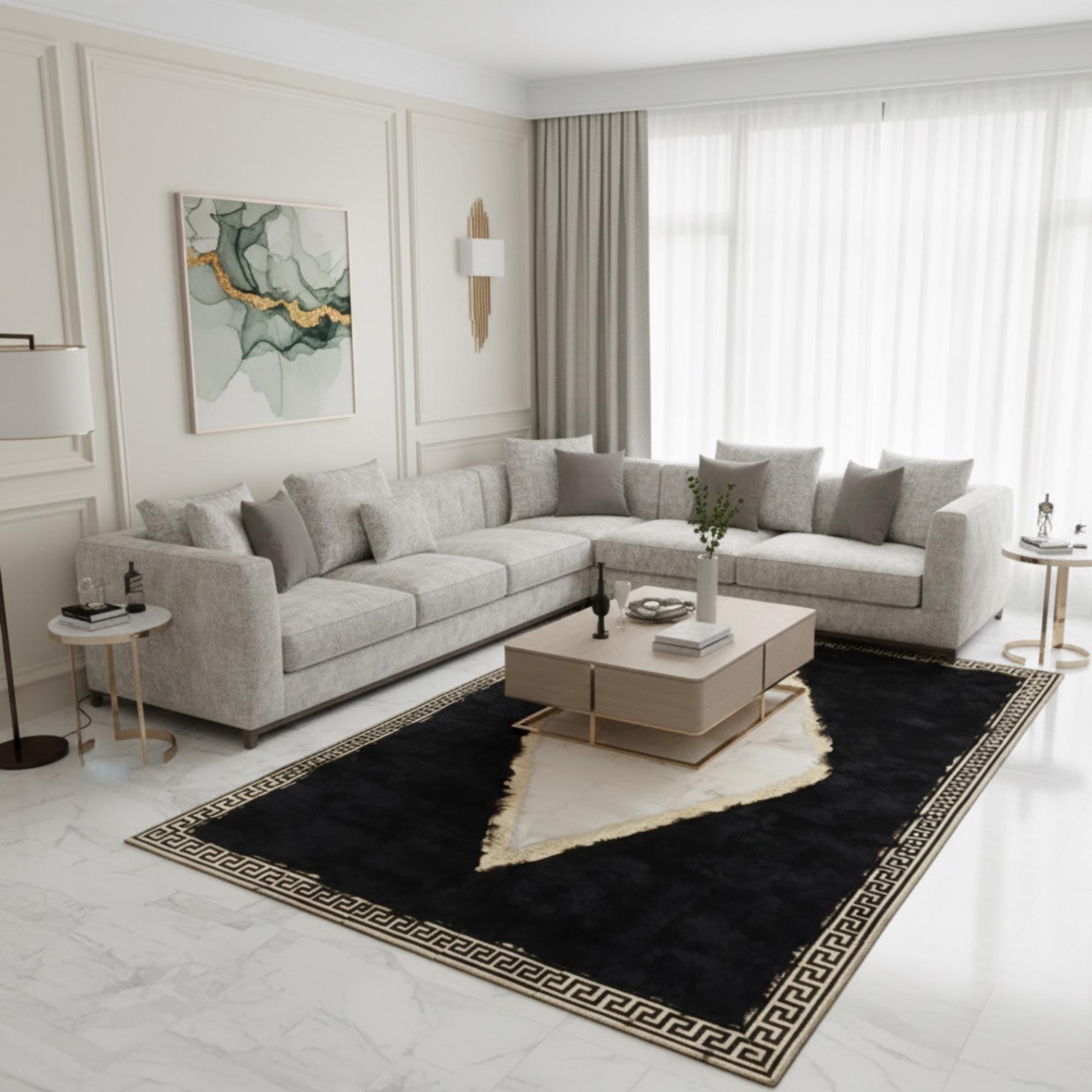 Siyah Zeminli Toscana Kürk Halı – Kaymaz Tabanlı Premium Tasarım