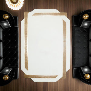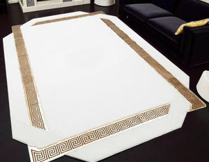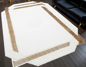 Beyaz Altın Şeritli Yumuşak Peluş Halı - Şık Salon Halısı