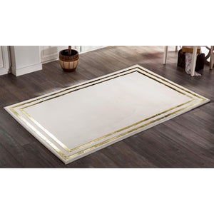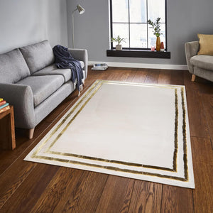 Krem ve Altın Renkli Çerçeveli Gerçek Toskana Derisi Lüks Salon Halısı
