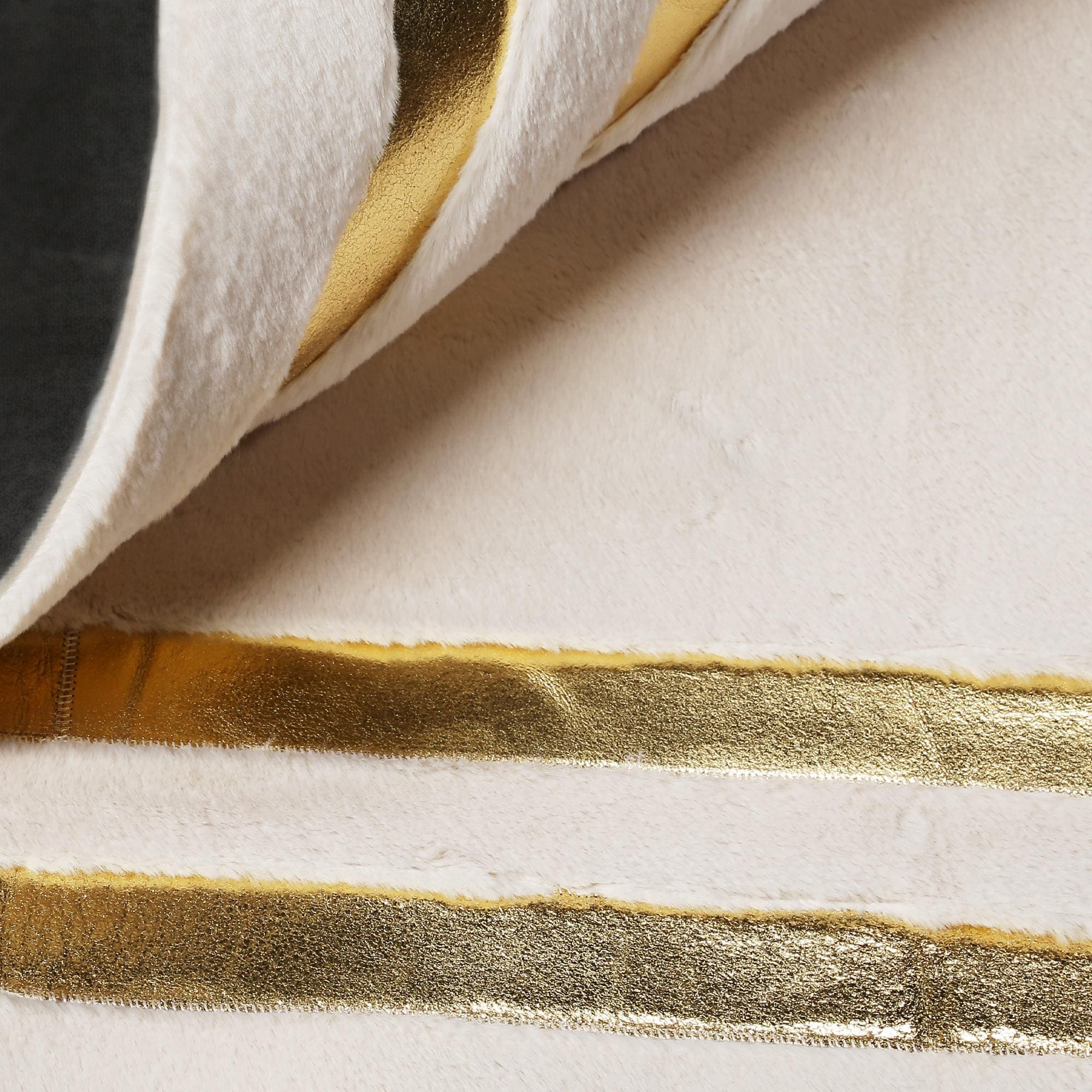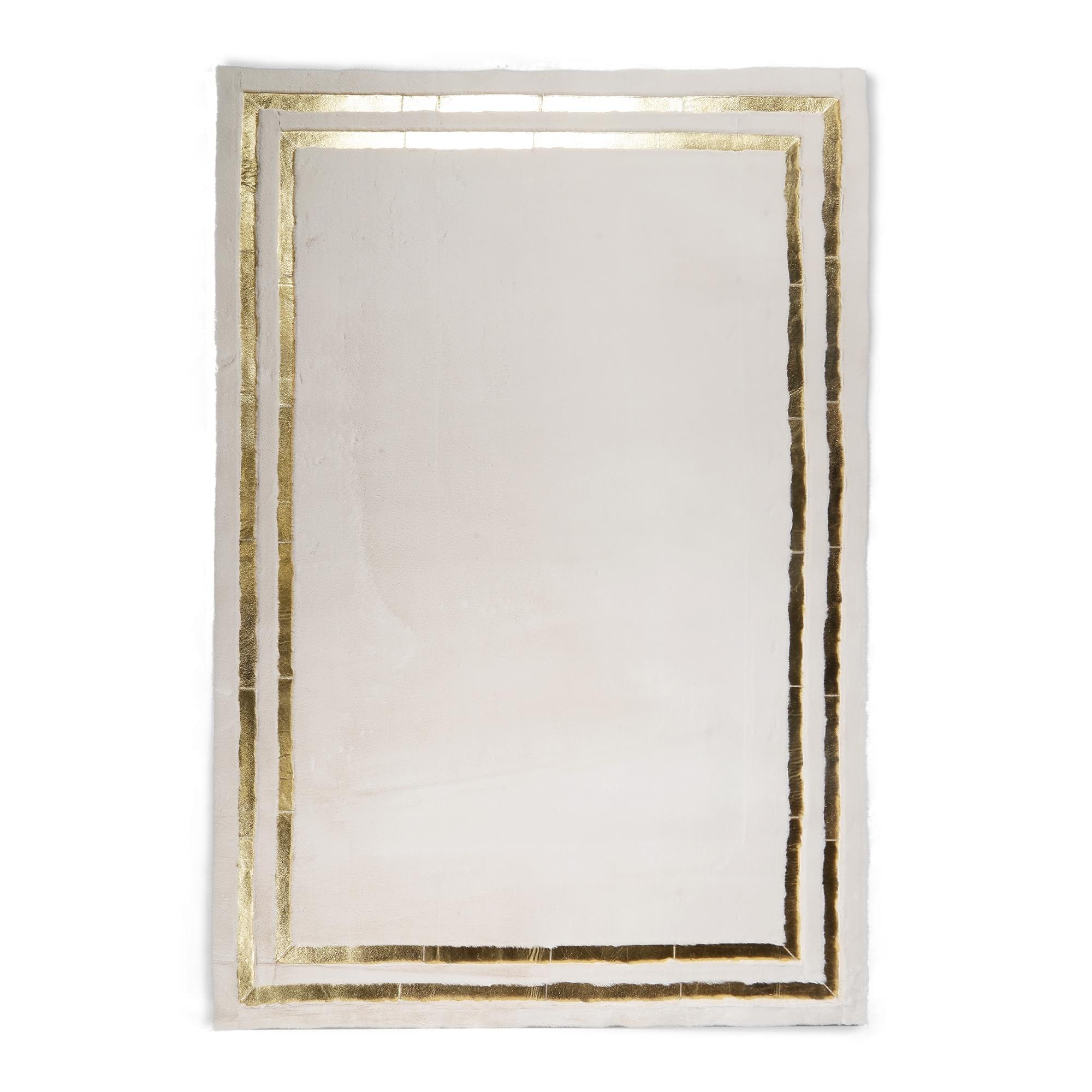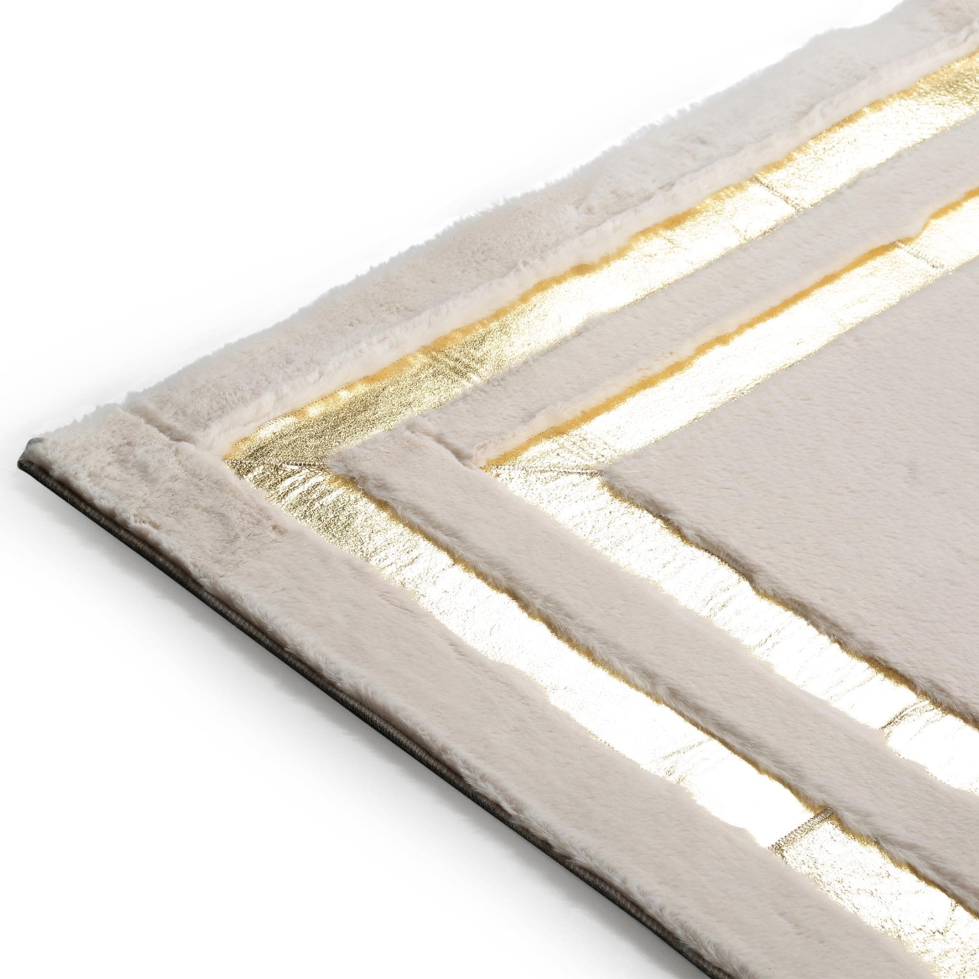 Beyaz Peluş Halı – Altın Bordürlü Dikdörtgen Halı, Yumuşak El Yapımı Dekoratif Peluş Halı, Lüks Salon Halısı