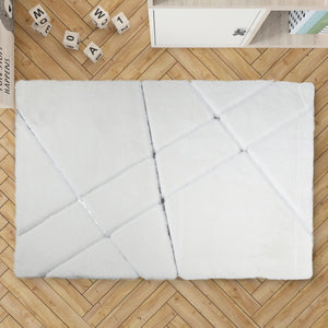 Beyaz Renkli Çizgi Desenli Yumuşak Dokulu Peluş Lüks Salon Halısı