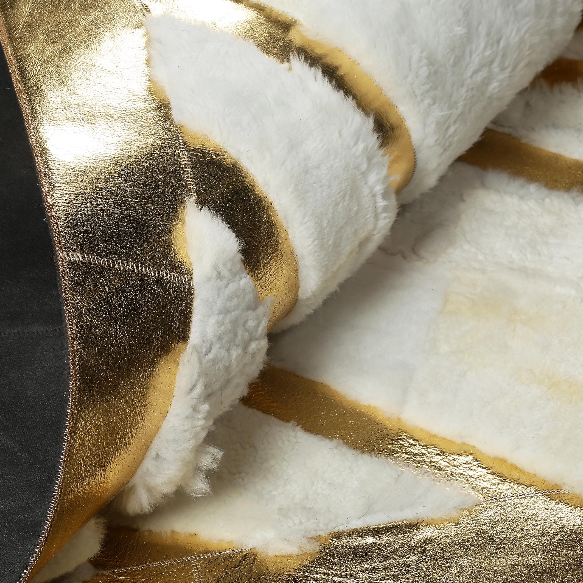 Beyaz Altın Çizgili Peluş Halı – Modern Dikdörtgen Yumuşak Halı, El Yapımı Lüks Dekoratif Salon ve Oturma Odası Halısı