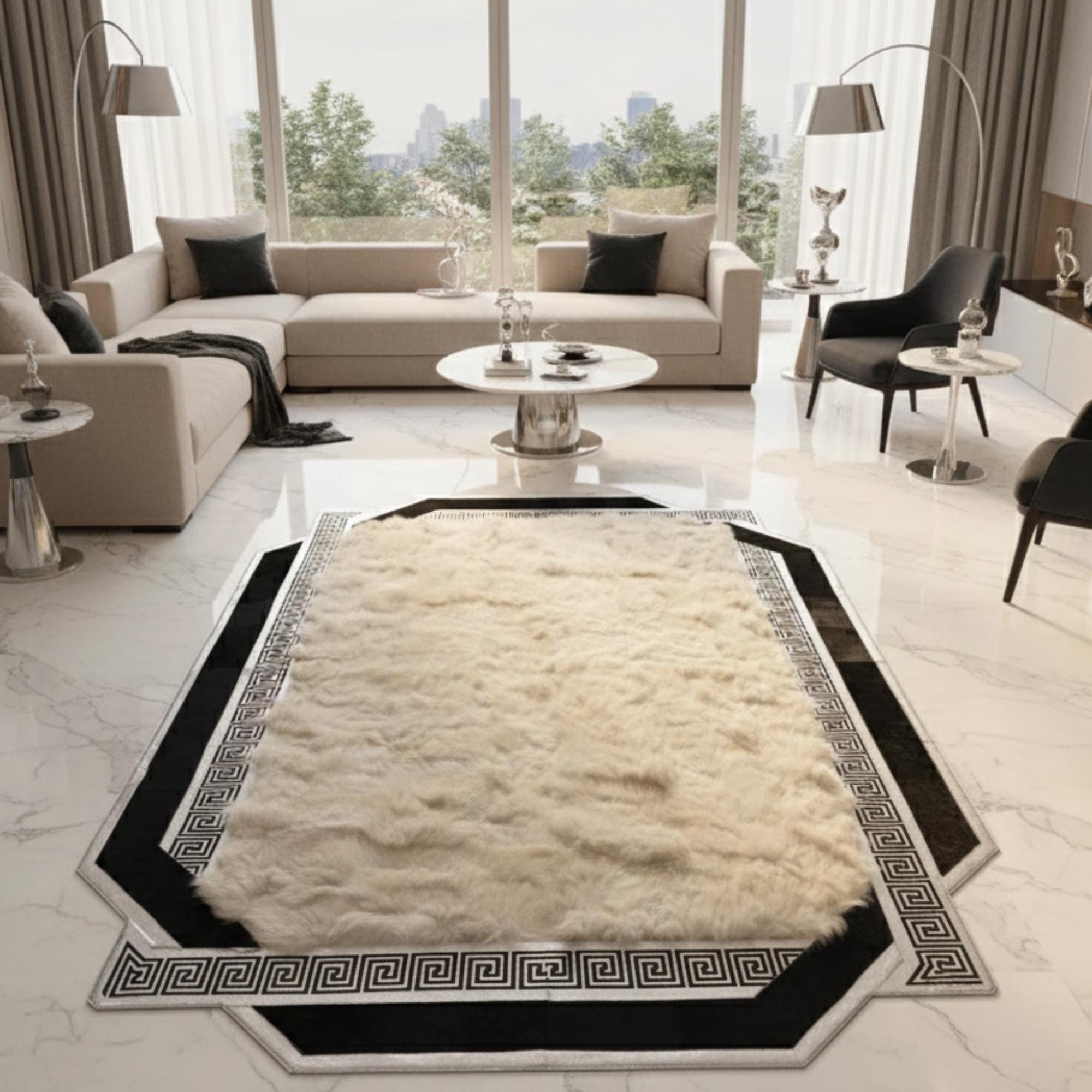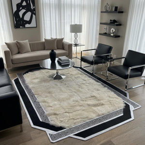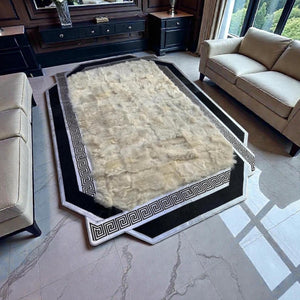 Siyah Bordürlü Krem Toscana Kürk Halı – Kaymaz Tabanlı Premium Tasarım