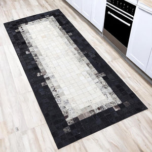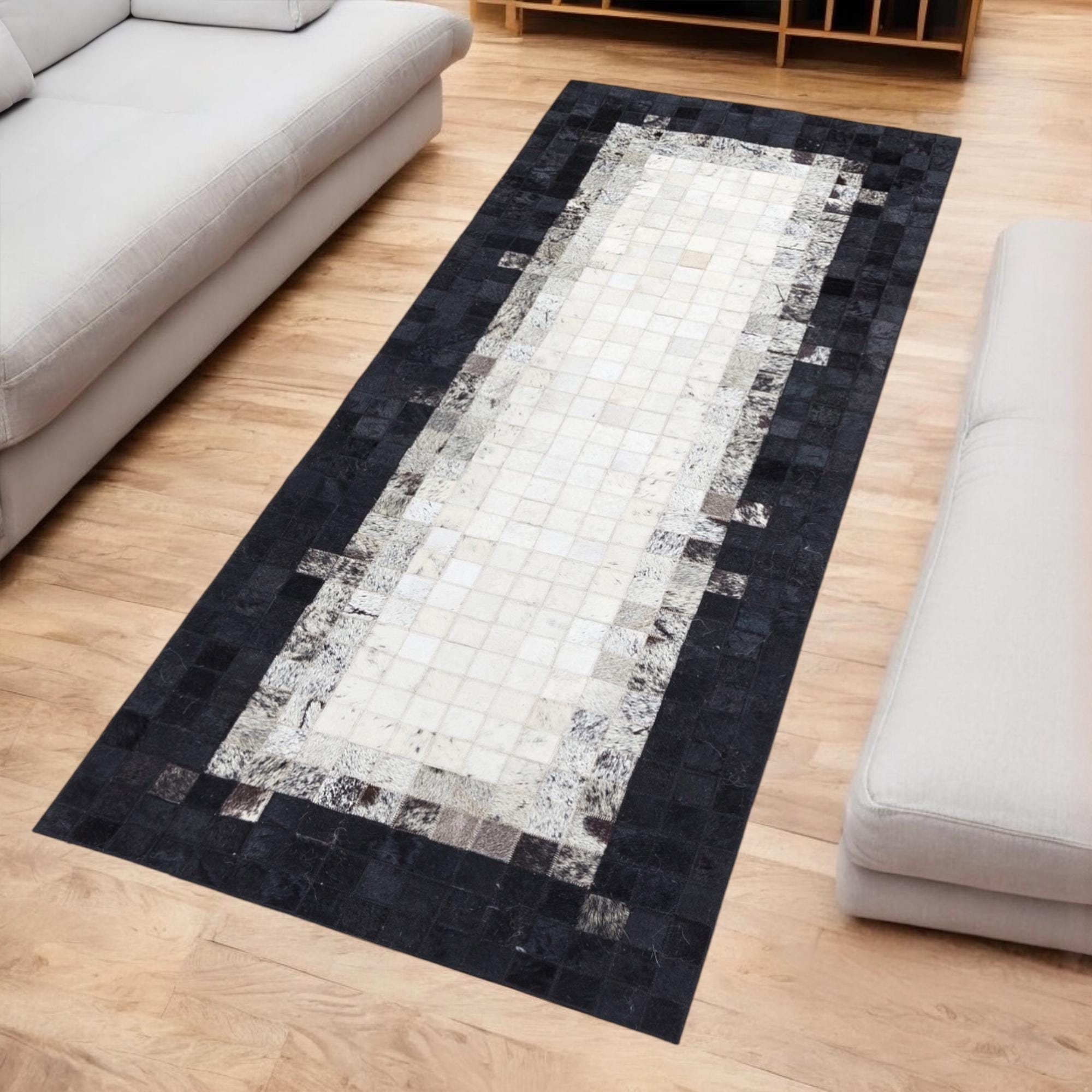 Şık Antre Halısı – Gri Beyaz Siyah Renkli Dana Derisi El Yapımı Halı