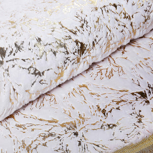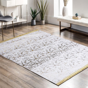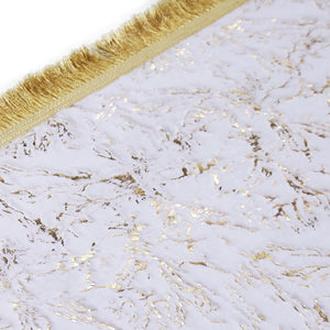 Beyaz Zeminli Altın Mermer Desenli Yumuşak Dokulu Peluş Lüks Salon Halısı